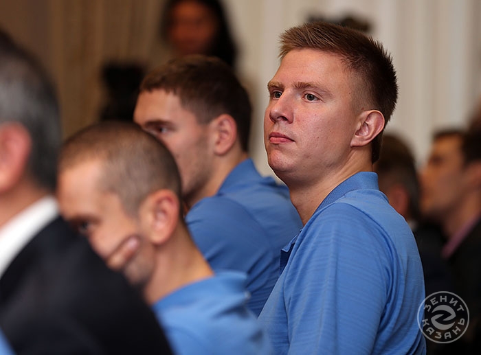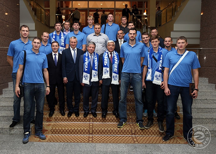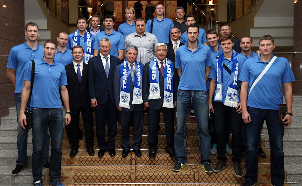 – Думаю, многие восторгались игрой нашей сборной на чемпионате Европы у экранов телевизоров, – сказал Мухаметшин. – Эта победа войдет не только в биографии игроков, но и в историю нашего клуба, отрядившего в национальную команду сразу четверых игроков – Максима Михайлова, Алексея Вербова, Николай Апаликова и Евгения Сивожелеза. Мы гордимся вами! Огромное впечатление лично на меня произвела игра Вербова. Он вытаскивал невероятные мячи! Последние успехи сборной дают огромный импульс для развития волейбола в нашей стране. Стремительно растет уровень команд и конкуренция в чемпионате России, болельщики с удовольствием идут на трибуны. Все это здорово. В этом году мы вводим платные билеты на волейбол, поэтому вы должны играть не только ради титулов, но и для привлечения болельщиков на трибуны. Нужно, чтобы были аншлаги, хотя мы все равно планируем, что телеканал ТНВ будет показывать матчи «Зенит-Казань» в прямом эфире.