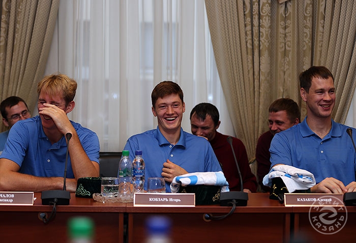 После этих слов журналистам были представлены новички команды, хотя все они уже успели сыграть в кубковых встречах. Новички по традиции получили татарские национальные головные уборы – тюбетейки. Кроме того, четыре игрока – Владислав Бабичев, Николай Апаликов и Александр Абросимов получили памятные наградные знаки символического Клуба Бабичева, которые отныне будут вручаться всем игрокам, сыгравшим за «Зенит-Казань» 200 и более матчей. Кстати, накануне Бабичев сыграл уже свой 500-й матч за команду.